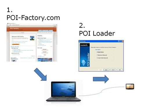 2) Connect your GPS and run POI Loader to transfer them from the computer to the GPS.